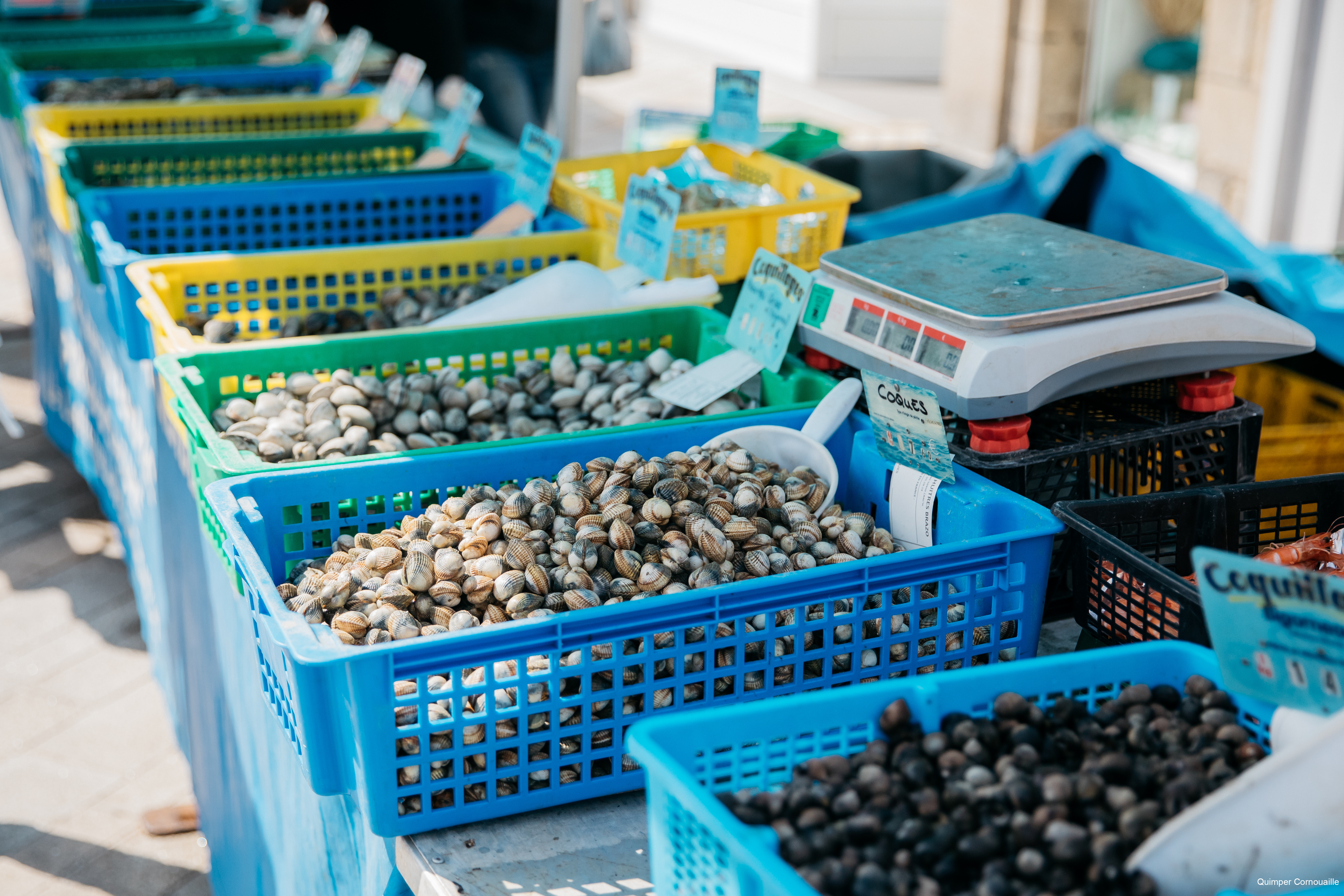 Fruits de mer sur un étal au marché d’Audierne