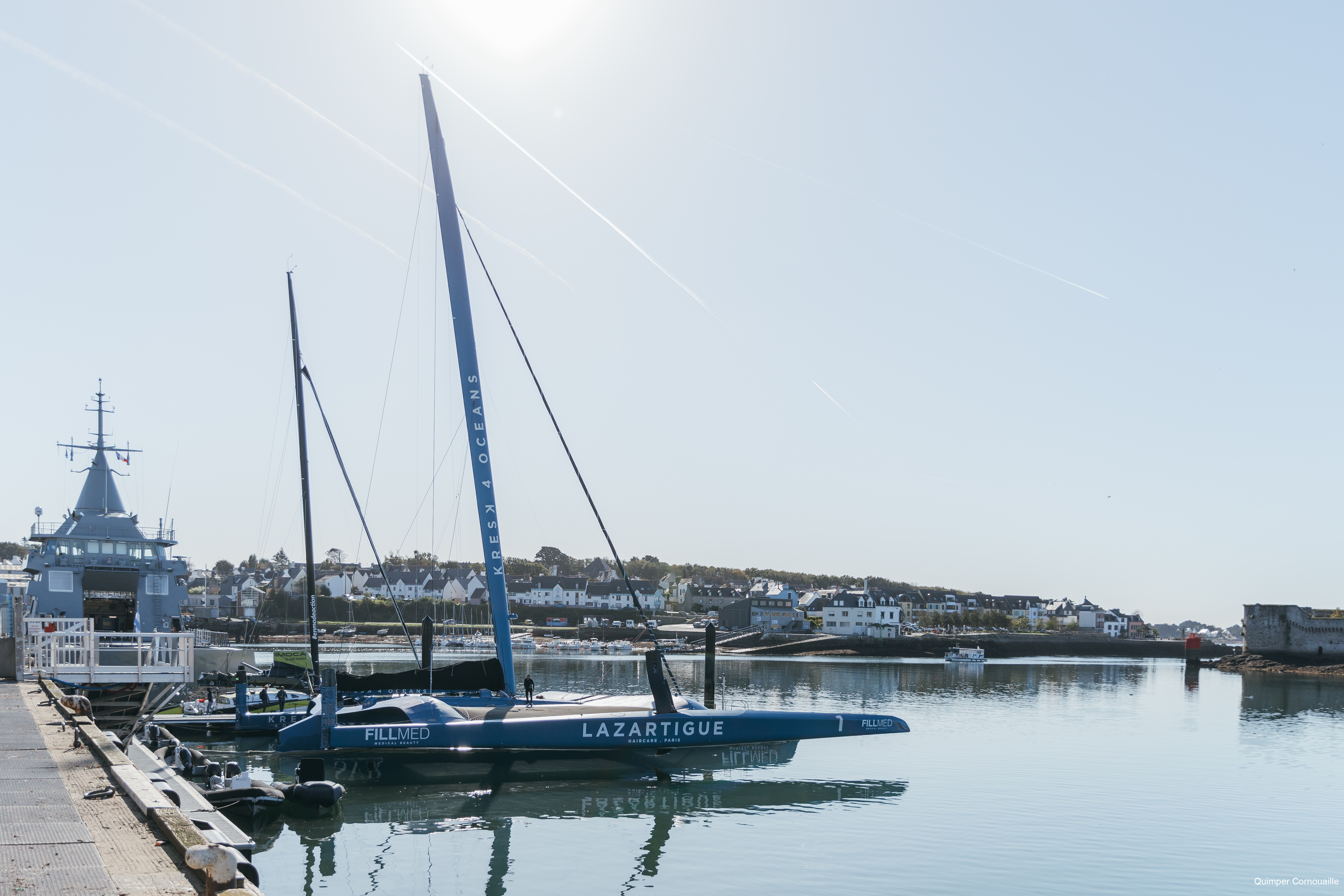 Bateau de course / Catamaran / Voilier / Bateau gris / Port
