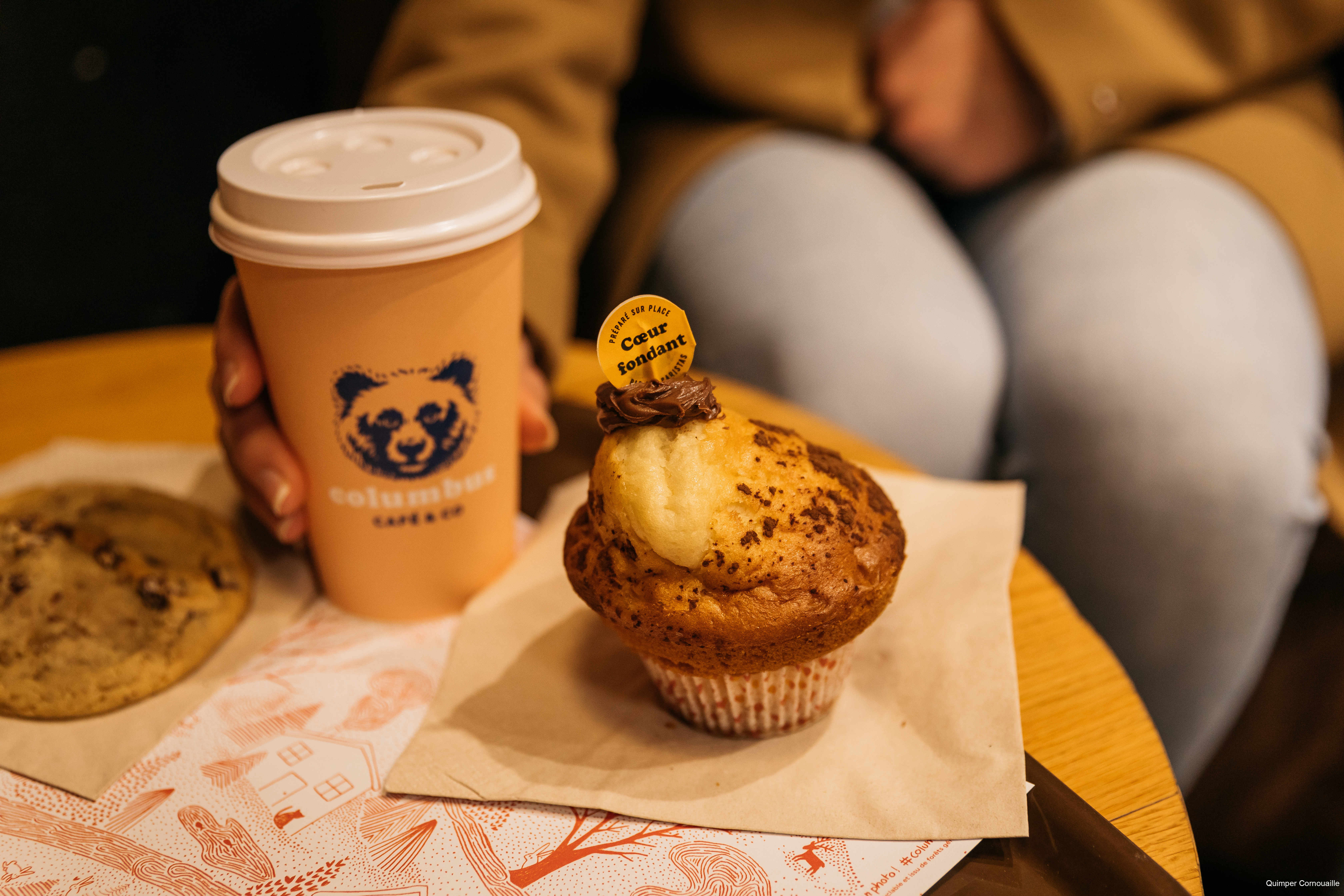 Tasse à café et gâteau au chocolat au Columbus café&Co à Quimper