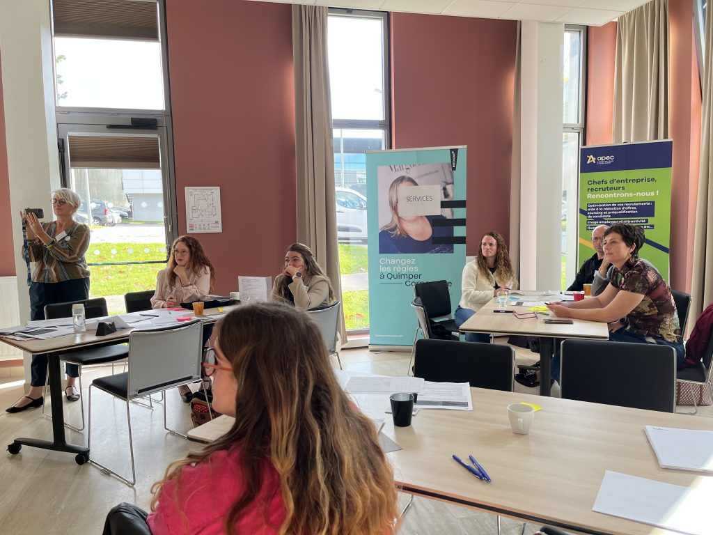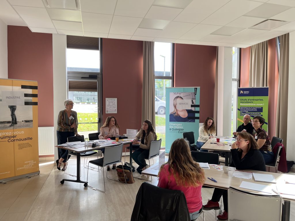 Animé par Maryse Brégeon et Emmanuelle Coacolou (Quimper Cornouaille Développement) et Murielle Boucher (Apec Bretagne), l’atelier a réuni des employeurs de secteurs variés (industrie, services, recrutement…).